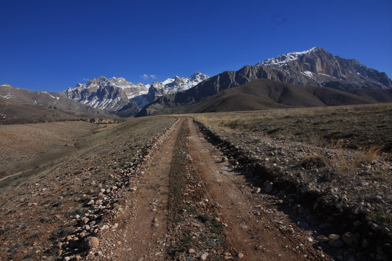 bifurcation sous le Körtekli entre l'itinéraire vers l'Alaça (à gauche) et le Küçük Alaça (à droite) |  l'Alaça arrive en point de mire |  l'Alaça Dagi et le Küçük Alaça séparés par l'arête |