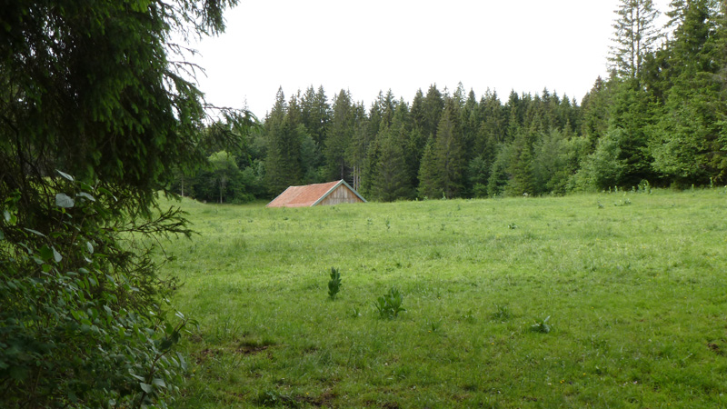 Repartir vers le Sud par les pistes de ski de fond. Peu après le point 1048m, prendre à droite, toujours plein Sud. Au point 1063m, prendre encore à droite, direction Sud-Ouest, jusqu'au bout de la piste forestière aux Grands Communaux.
