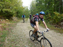 Lilian et Yopa dans la forêt au pied de la Côte Malvaux |  Yopa dans la descente vers la Grange à la Dame |  Bébet et Yopa dans la descente vers la Grange à la Dame |  au Haut des Prés |  Lilian sur le chemin (boueux) après le Haut des Prés |  chemin après le Haut des Prés |  crevaison en règle (chambre explosée) pour Bébet sur la piste après Sur les Gits |  Lilian et Yopa sur la piste de la GTJ, peu avant la Norbière |  Bébet sur la piste de la GTJ, peu avant la Norbière |  sur la piste de la GTJ, peu avant la Norbière |  arrivée à la Norbière |  début du chemin menant à Chaumeau |  Chaumeau |  entrée dans la forêt après Chaumeau |  Bébet sur le chemin du facteur, entre Chaumeau et les Prés Hauts |  Yopa sur le chemin du facteur, entre Chaumeau et les Prés Hauts |  Lilian sur le chemin du facteur, entre Chaumeau et les Prés Hauts |  Lilian peu après les Prés Hauts |  sur la piste menant à la Croix des Besses |  dans la descente vers la Croix des Besses |